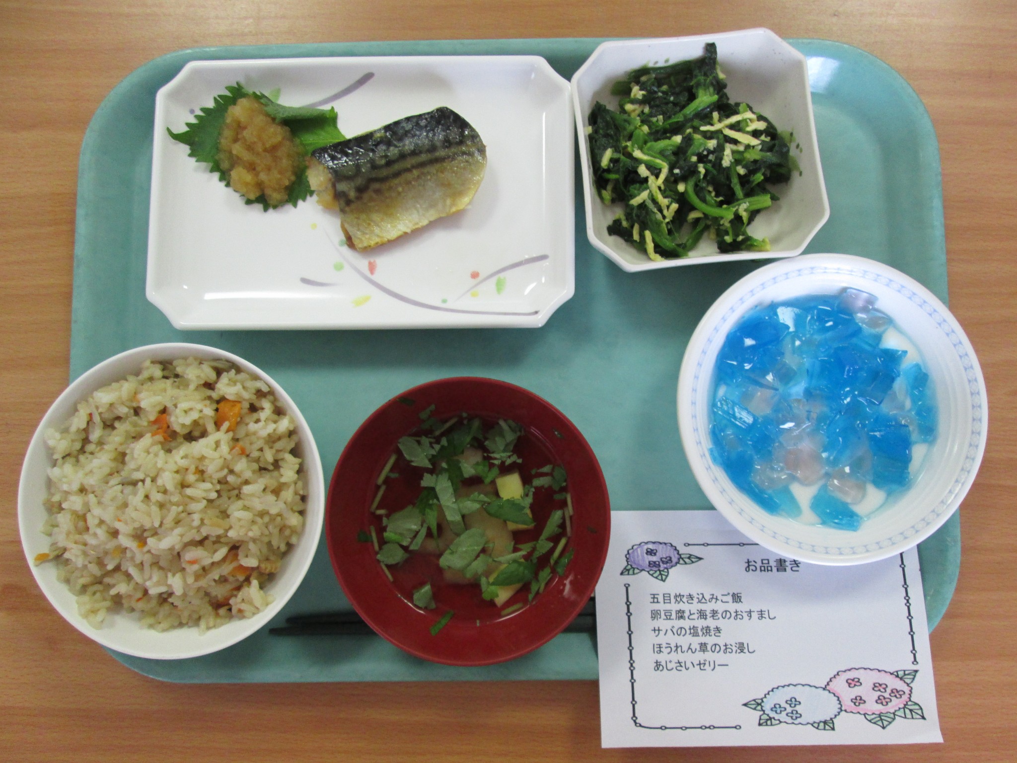 先週は、行事食のあじさいご膳でした。色鮮やかなアジサイゼリーはご利用者様に好評でした。