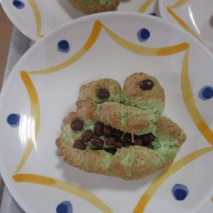 昨日と本日、2日間フードセラピーが行われました。 テーマは、カエルです!(^^)! 梅雨が予想以上に早く明けてしまいましたが、当初の予定通り、 カエルをテーマにしました。 皆さんに、手袋を着用して頂いた後、手作りでおやつ作りを していきます。 可愛い豆腐入りカ…