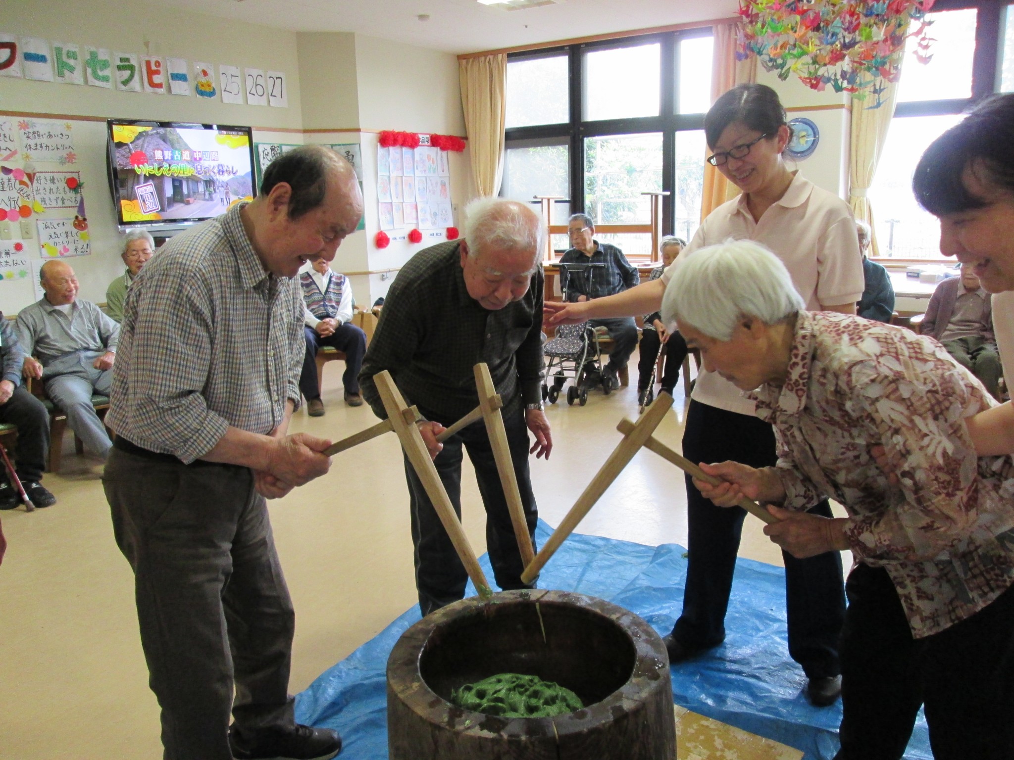 今年は草もちを作りました。2日間にわたり、多くのご利用者様に体験をしてもらいました。