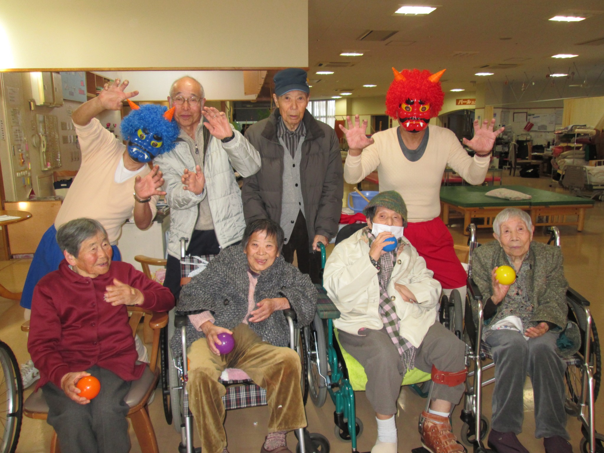 通所リハビリでは、節分に鬼玉いれを行いました。
